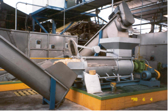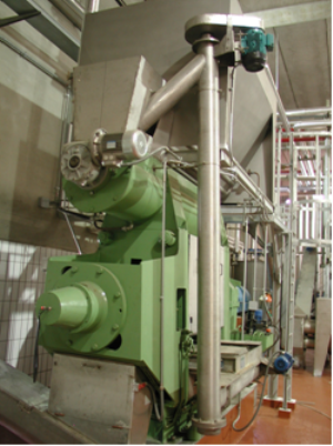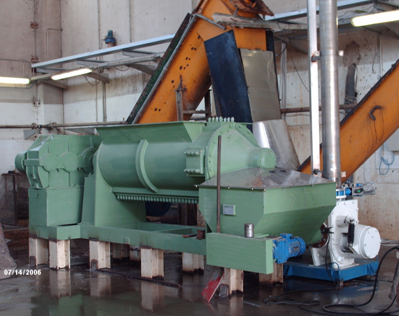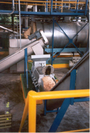 Urządzenie przeznaczone do rozdrabniania mączki pochodzącej z procesu odciskania, osuszania oraz pierza z procesu osuszania.